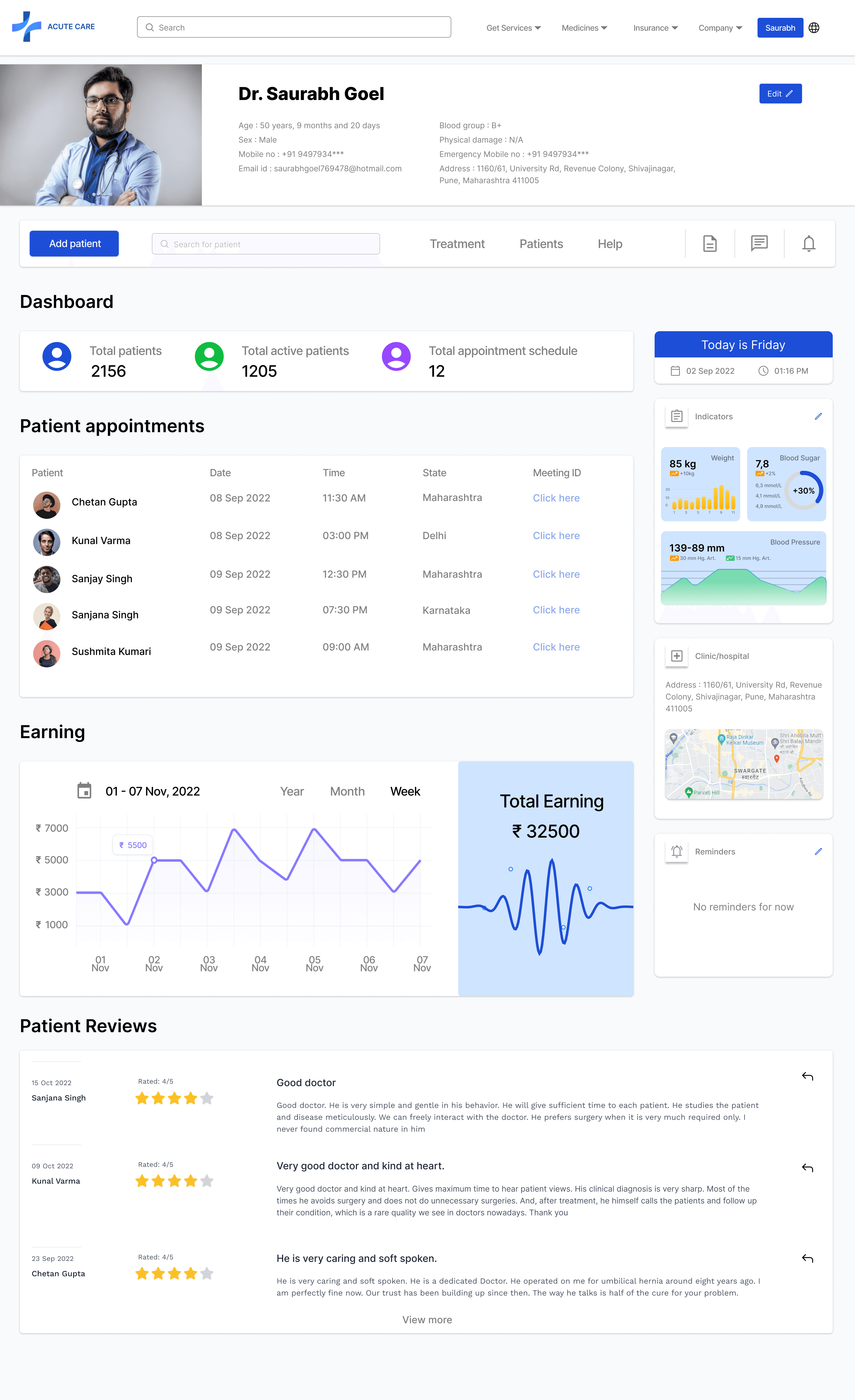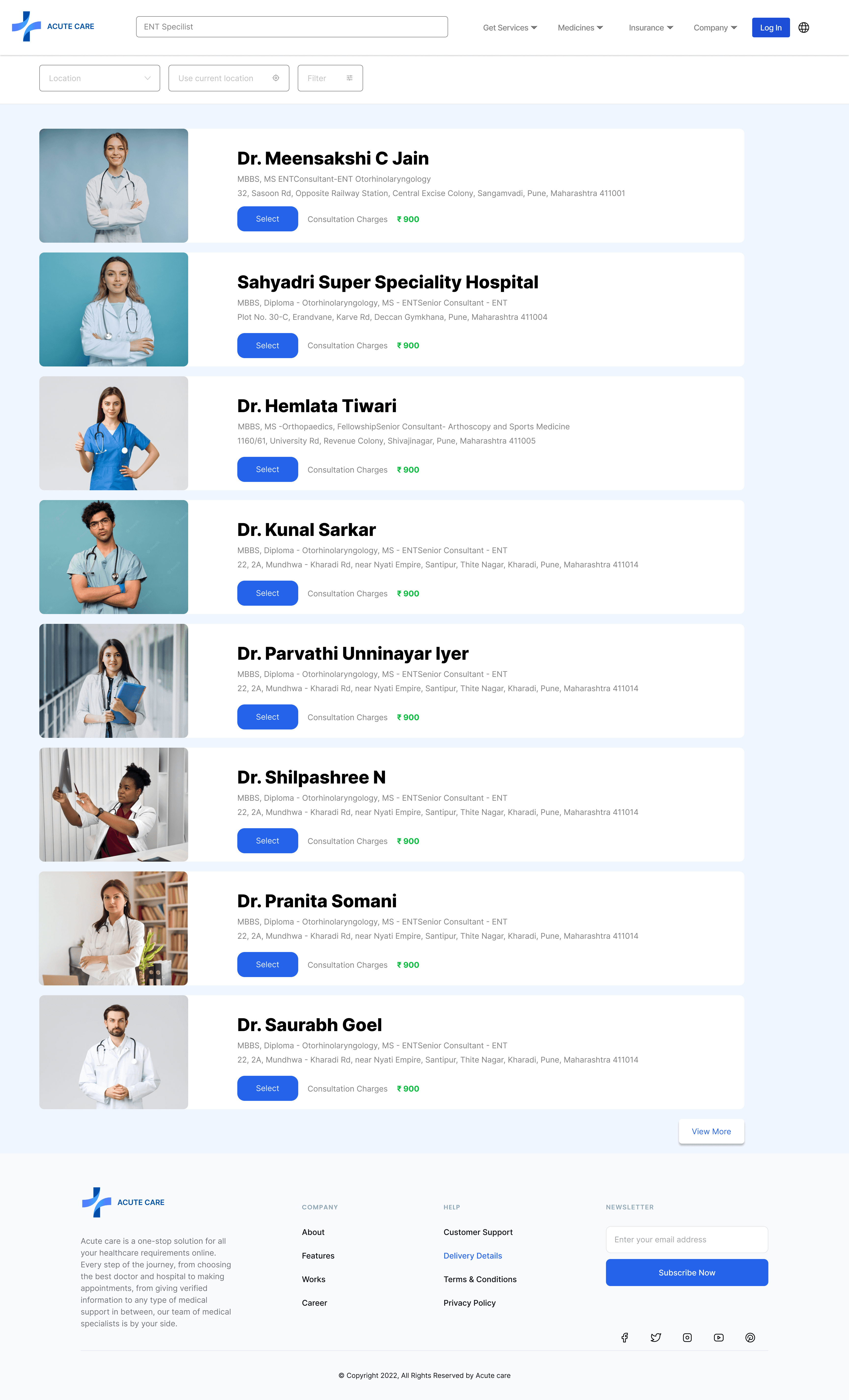 Acute Care is a mobile app for doctor consults, medicine, lab tests, nurses, and ambulances—reducing wait times and access issues.