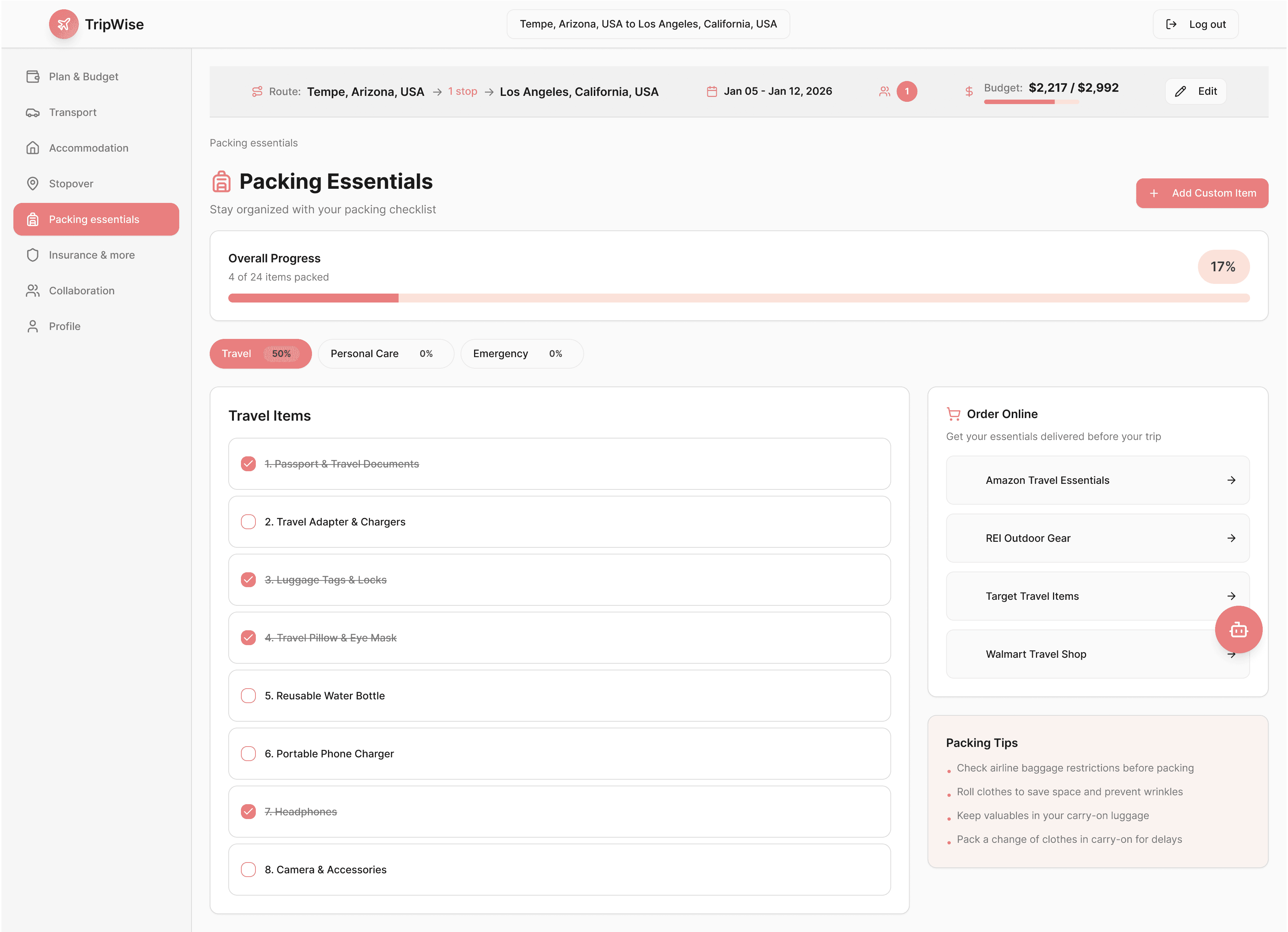 TripWise is an AI travel planner that unifies budgeting, itineraries, bookings, and group coordination in one place.