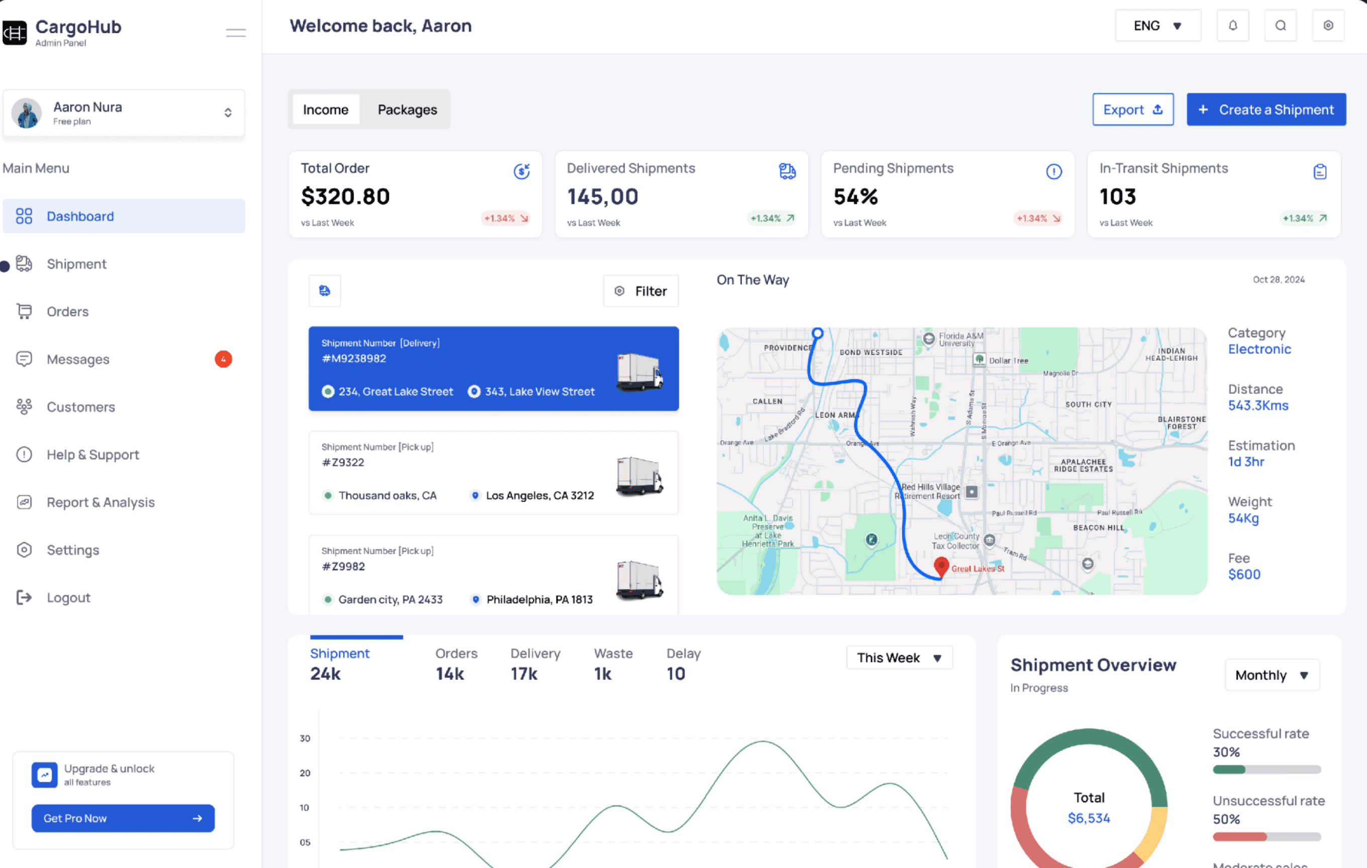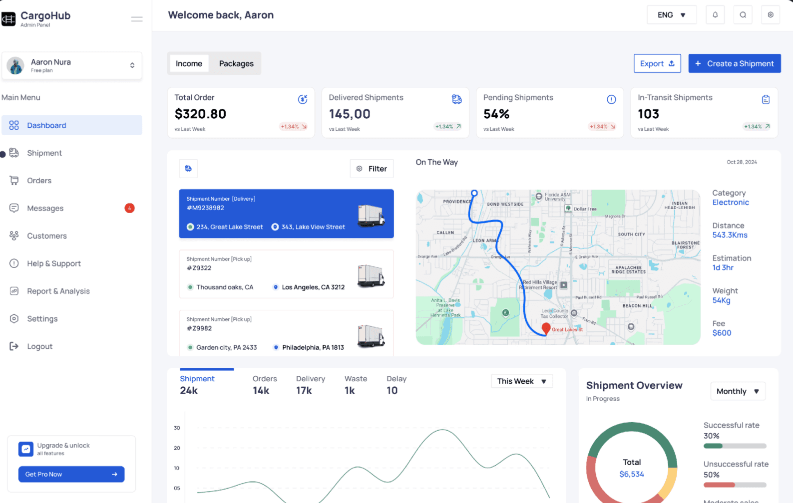 With interactive charts and graphs, the dashboard provides valuable insights into shipment trends, order statuses,