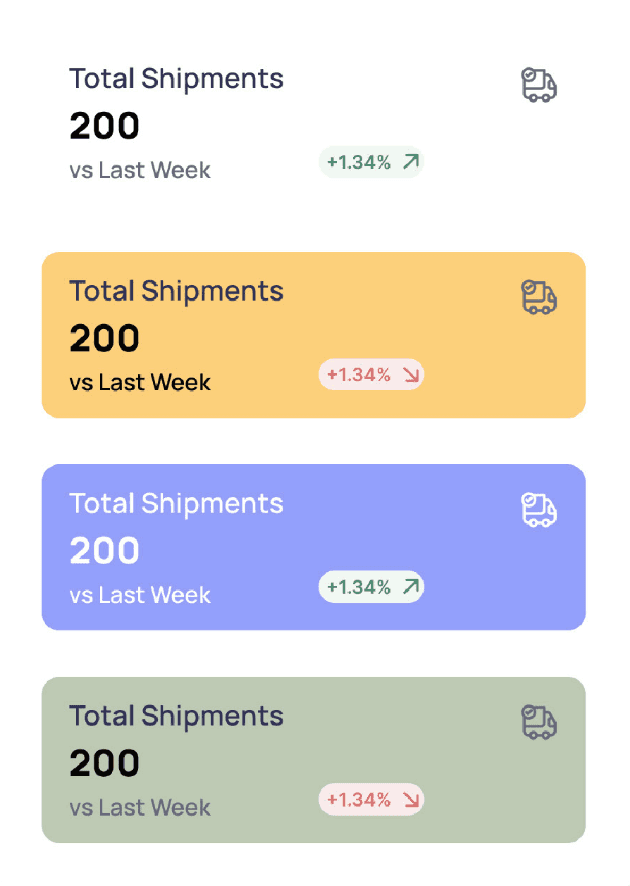 Display essential metrics (e.g., total shipments, on-time rate, and delays) for an overview of shipment