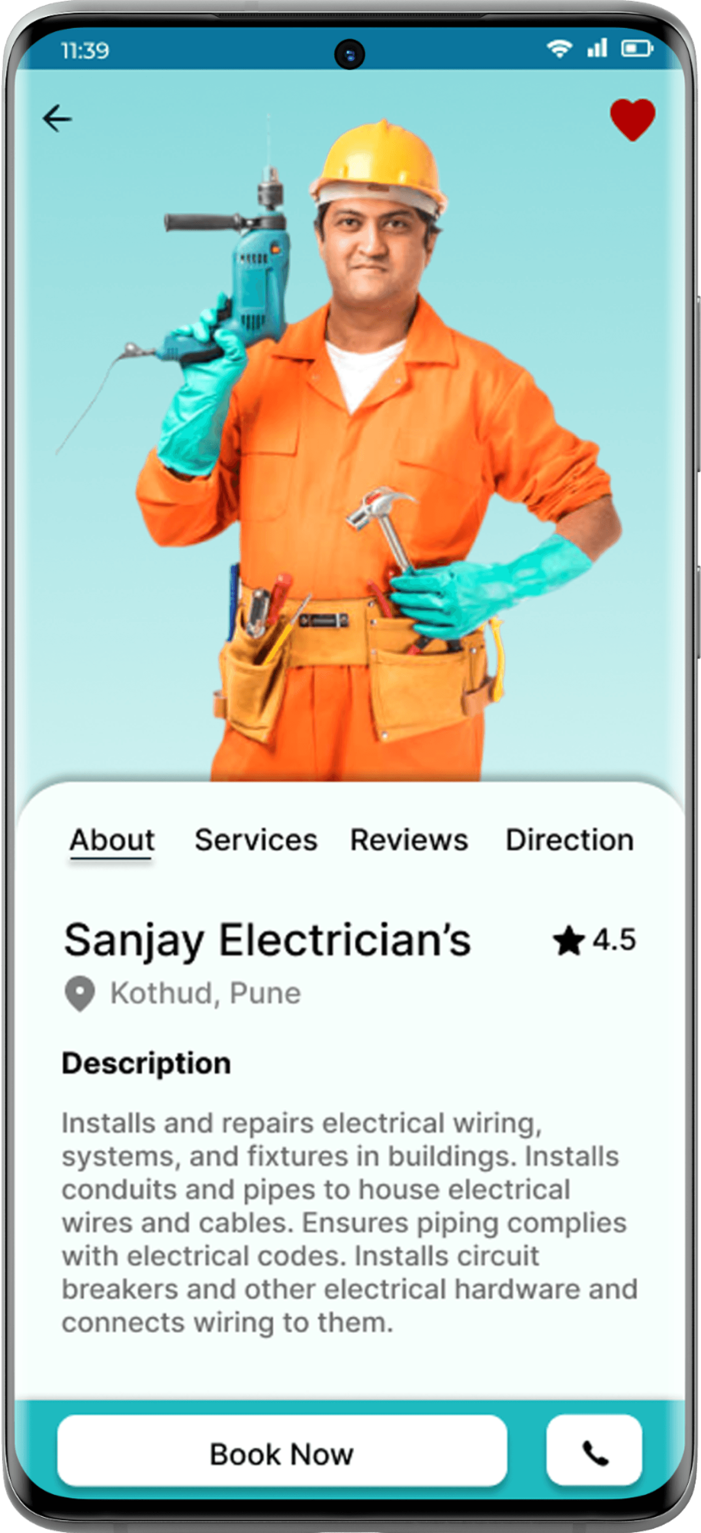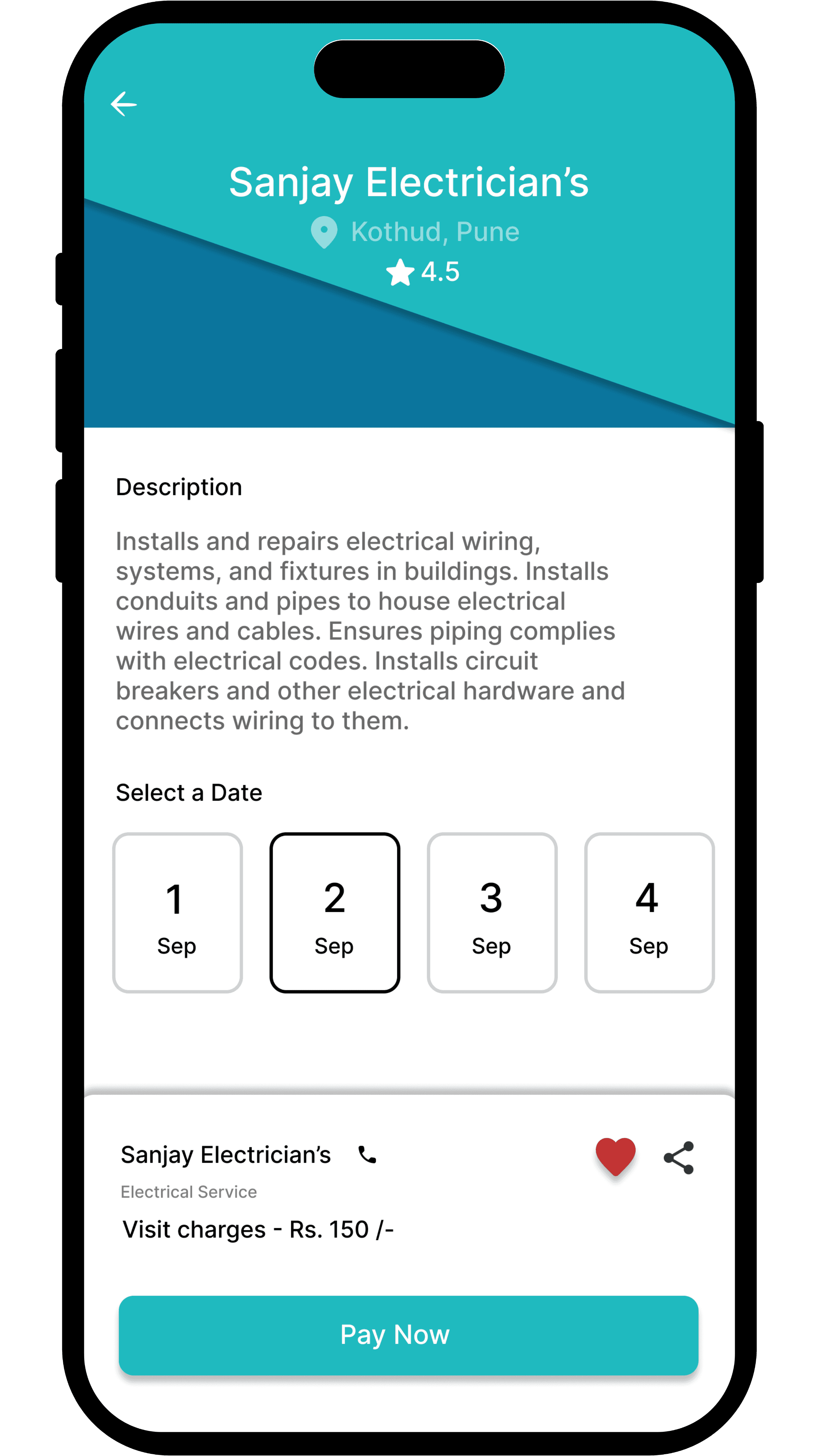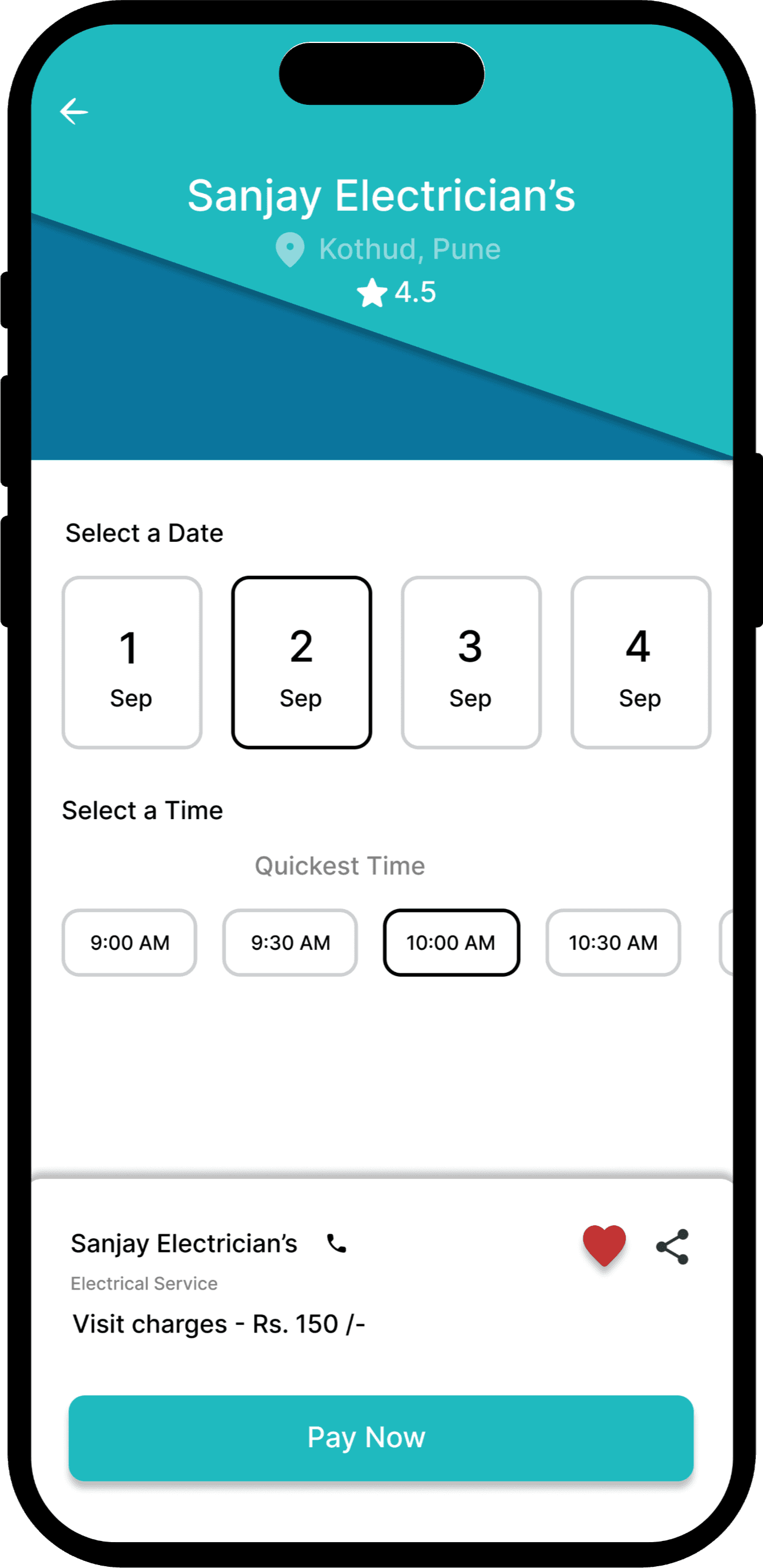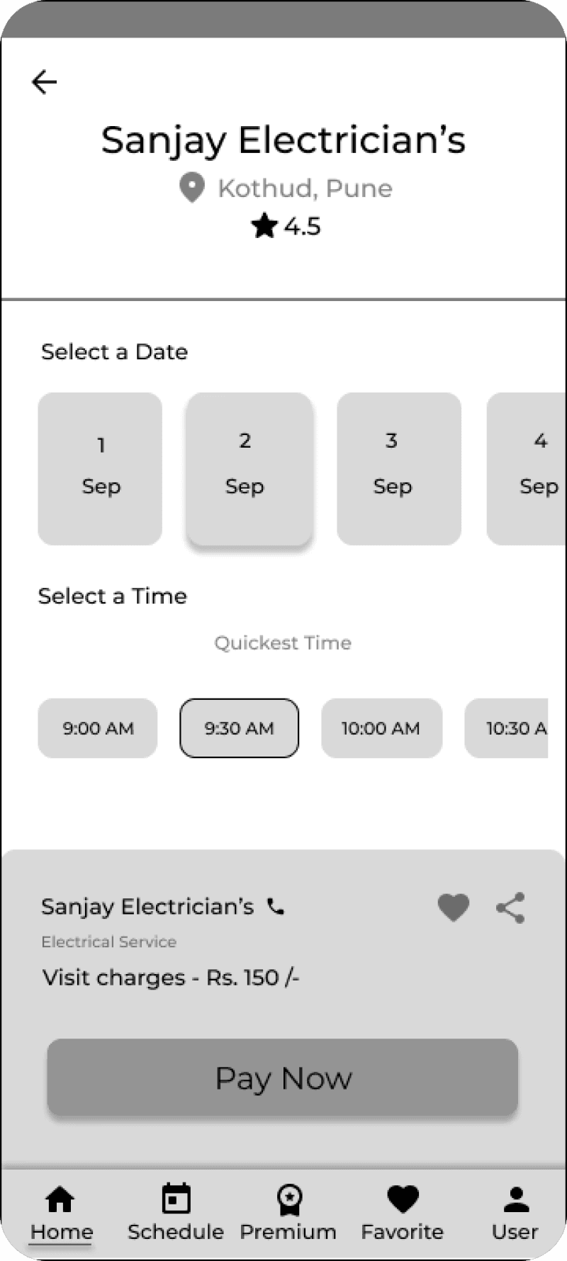 Users can quickly select a service, view provider details, choose a time slot, and complete payment—all in a few taps. The flow is simple, fast, and user-friendly