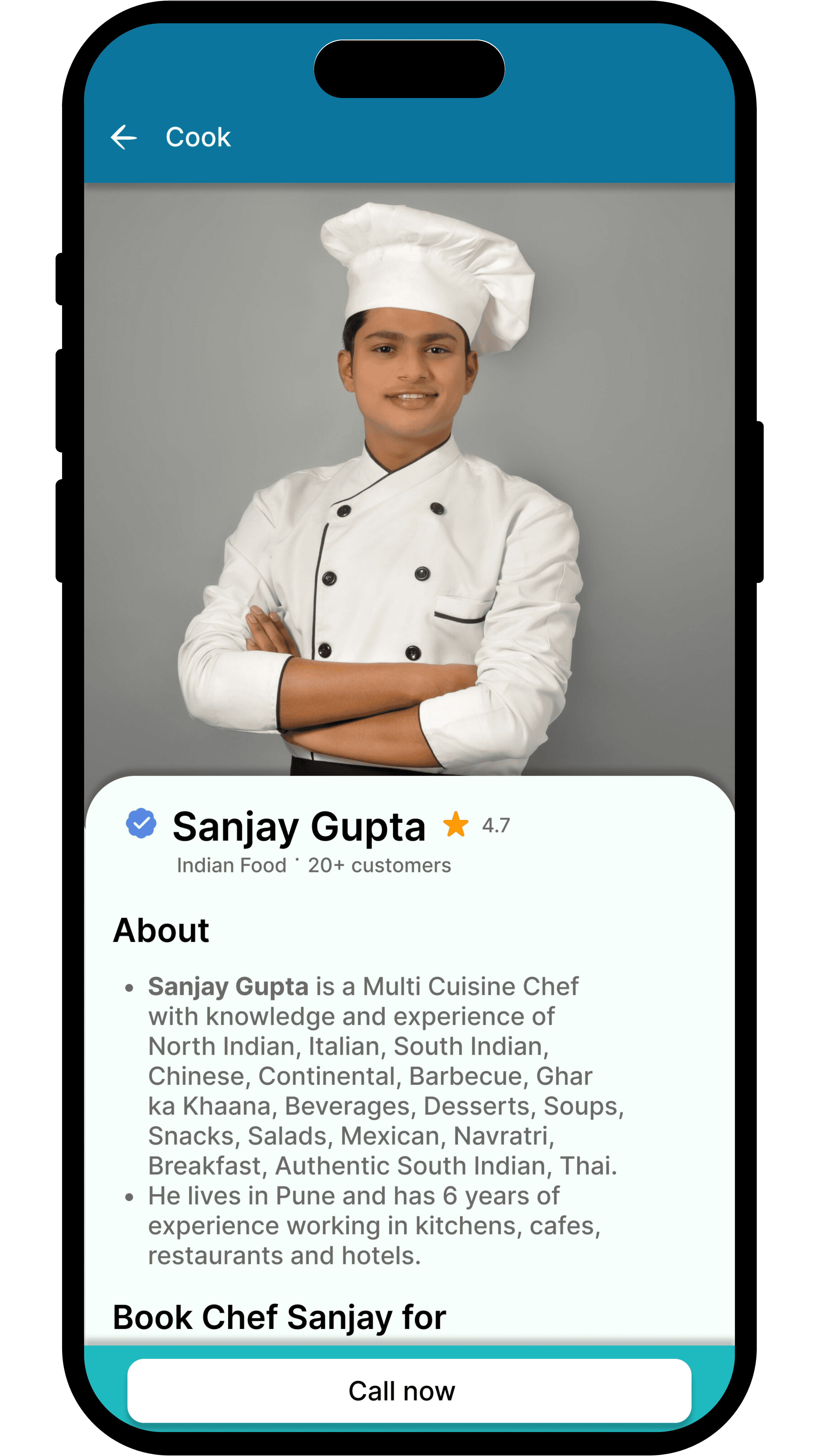 Users can book home cooks by availability and preference—making daily meals easy and reliable.